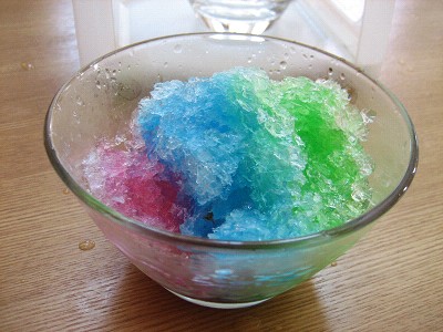 最近は「いちご」「ブルーハワイ」「メロン」の3色を全部かけて食べる娘(笑)