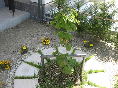 家が完成したときにも山砂を入れたけど、半年で飛ばされたり流されたり。