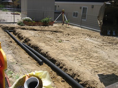 暗渠パイプを地下に通して雨水を通すか・・・