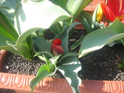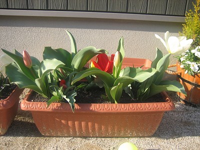 秋にプランターに植えたチューリップとスイセンとクロッカスの球根はすくすく育って、