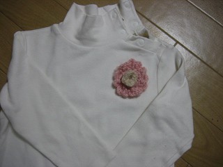 去年編んで娘の帽子につけていたものを、今年は娘のカットソーに付け替えてみました^^